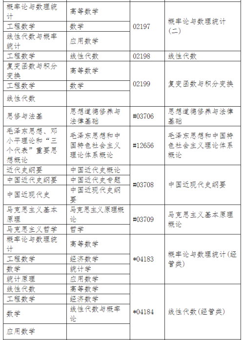 注:1.标记“#”的课程《学籍表》中的考查课也可免考;2.标记“*”的课程专科《学籍表》课程不予免考;