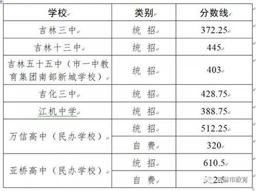 根据2020年四平市初中毕业生学业水平考试成绩,结合市直高中招生计划和考生志愿,经统计测算,现将市直高中学校招生录取分数线公布如下: