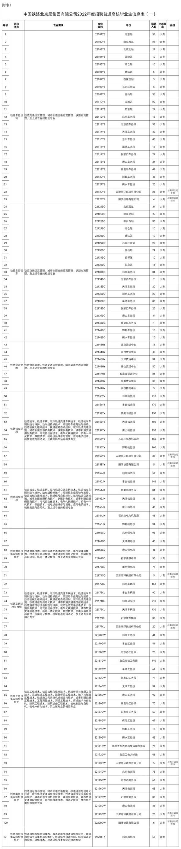 1、中国铁路北京局集团有限公司拟招聘普通高校大专(高职)学历毕业生,唐山有岗。